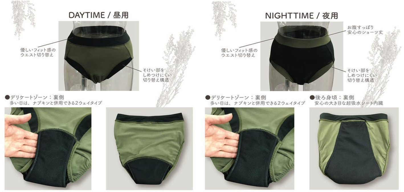 ◆デザイナー惠谷太香子さんと一緒に企画開発!細部の仕様にこだわった、やさしいデザインの吸水サニタリーショーツ