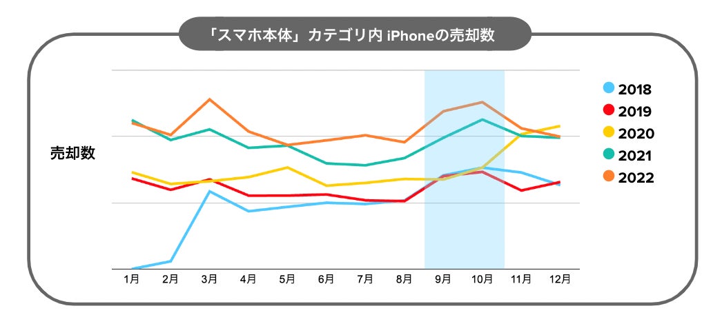今年の9月には新型iPhoneの発表が予定されており、今年もiPhone売買の盛り上がりが予測されます。例年9月以降の発売後にはiPhone売買量は増えていることがわかり、お得にスマートフォンの乗り換えを行っている人が多く存在します。特に円安や製造・部材費高騰に伴う新品価格の値上げで中古スマートフォン市場は拡大基調が続いており、事実、昨年発表された調査では中古スマートフォン全体の販売台数は過去最高を記録。(※1)今後も拡大が予測されています。