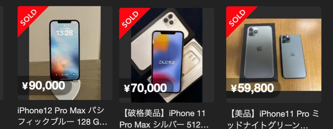 特に、「メルカリ」での取引は買い手と売り手が直接取引するため、3大キャリアの下取りより高く売れる可能性があります(※2)。 たとえば、iPhone13 (128G)の「メルカリ」平均取引価格は、3大キャリアの下取り最高価格である51,150円(※3)に対して、「メルカリ」平均取引価格では83,048円(平均販売利益74,272円)(※4)となっており、3大キャリア下取り最高価格より、31,898円高くなっています。