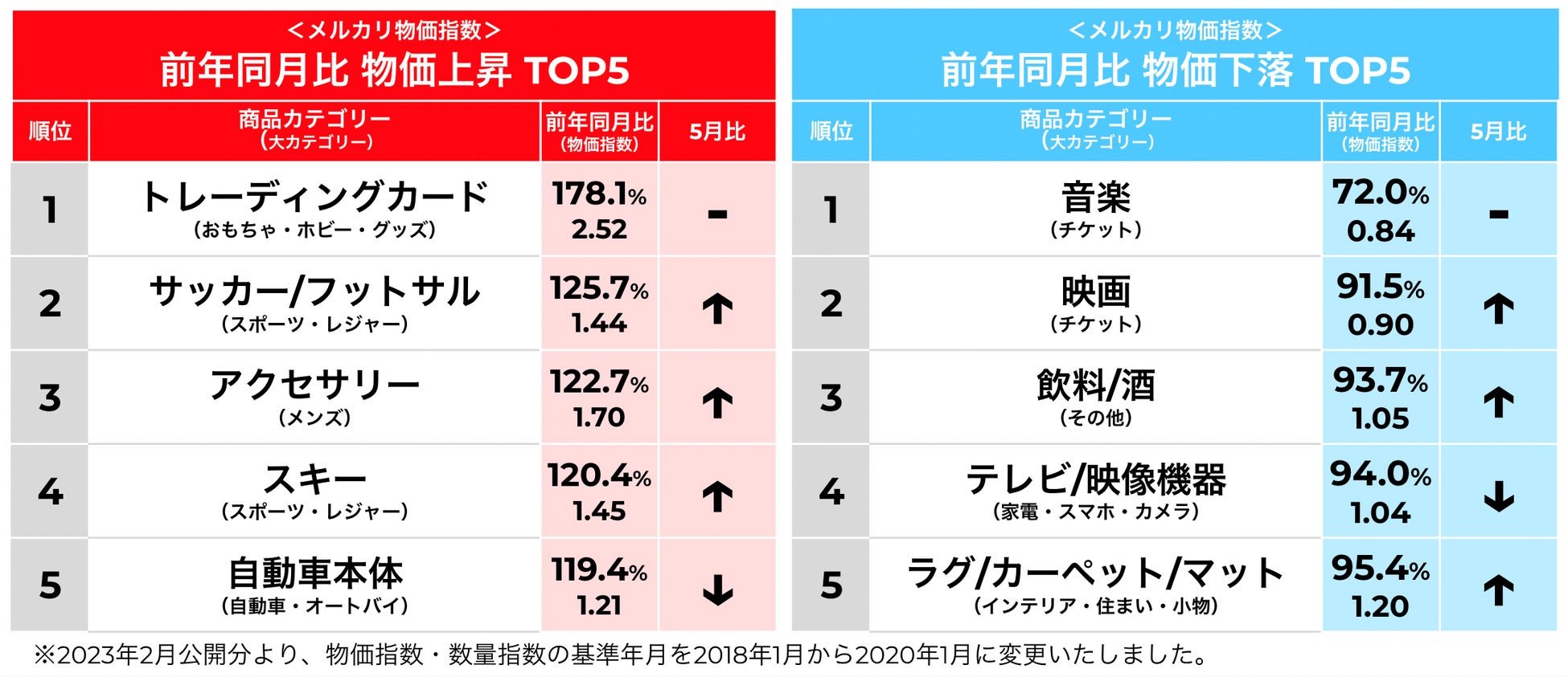 また、6月のメルカリ物価指数においては、「メルカリ」における「スキー」カテゴリーの物価指数が上昇しました。新型コロナウイルスが5類感染症に移行し、旅行の機会が増えた背景を受け、アウトドア関連商品の「メルカリ」内で需要が高まったことが伺えます。