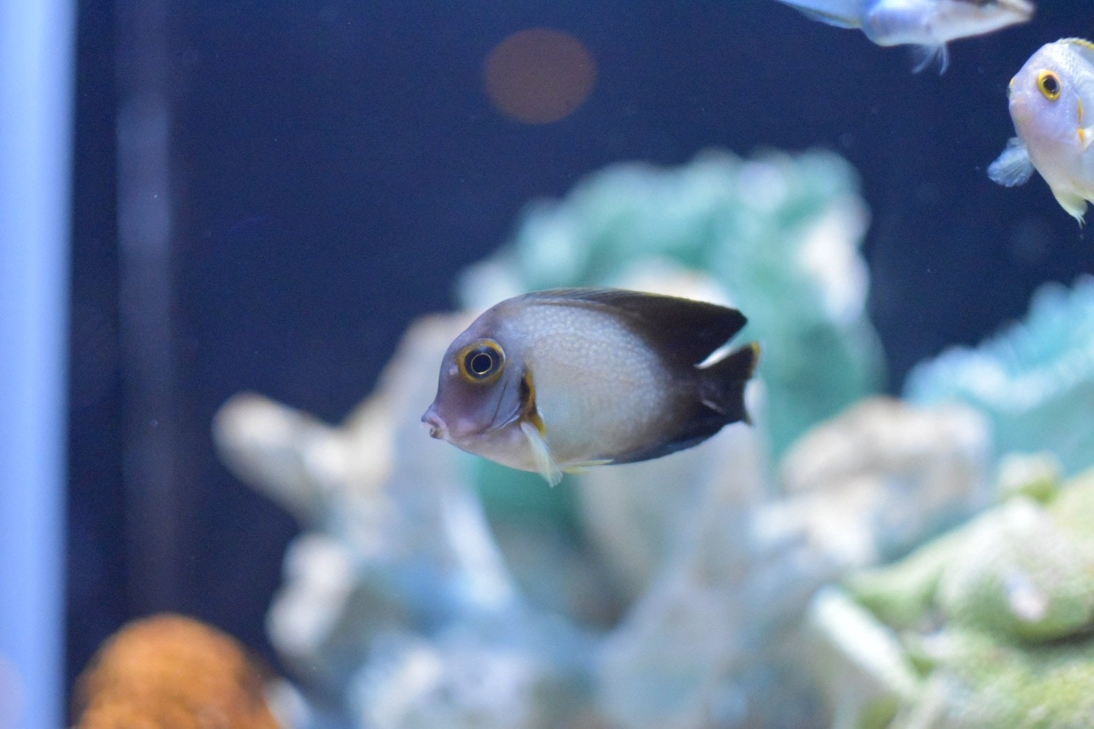・クログチニザ(Acanthurus pyroferus):幼魚時は逃げ足の速いヤッコ類に見た目を似せる。