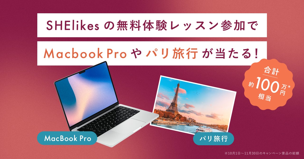 今回、10月1日から開始する秋のキャンペーンでは、期間中に体験レッスンを申し込み、参加することでパリ旅行やMacBook Proなど豪華商品を抽選でプレゼントいたします。
