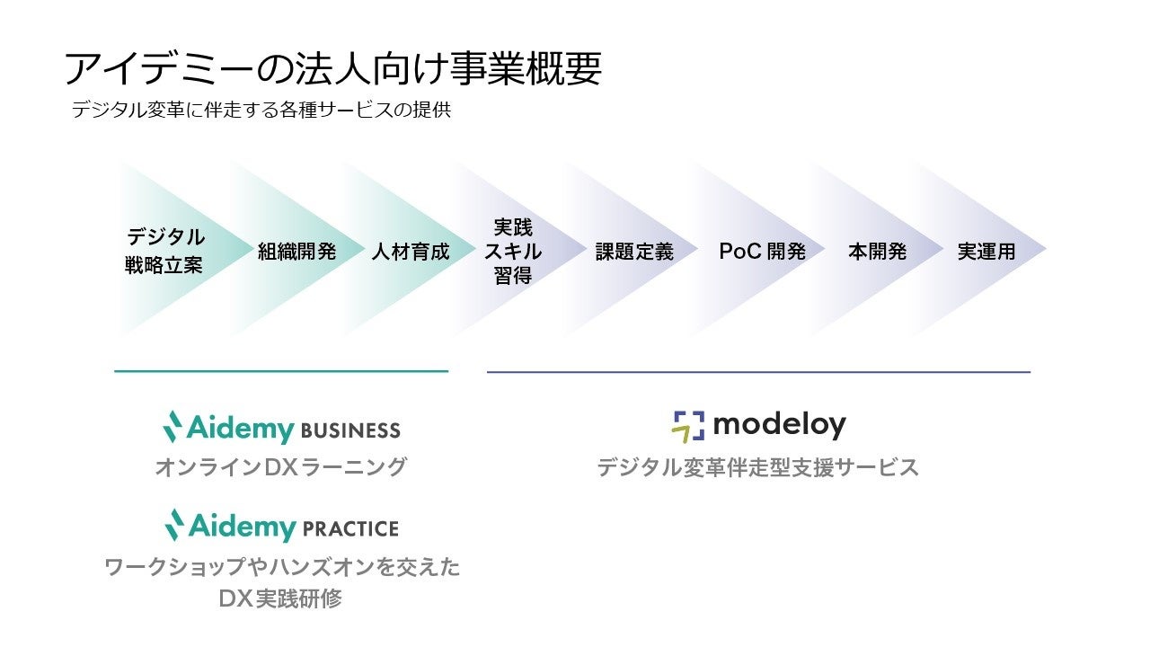 ・Aidemy Business:AIを中心とするDX人材・GX人材育成のためのオンラインDXラーニングプラットフォーム