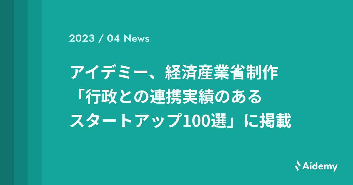 アイデミー、経済産業省制作「行政との連携実績のあるスタートアップ100選」に掲載