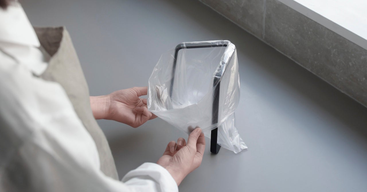 V字に開いて自立、ゴミが捨てやすい「ポリ袋ホルダー」にWEB限定色「ブラック」が新発売