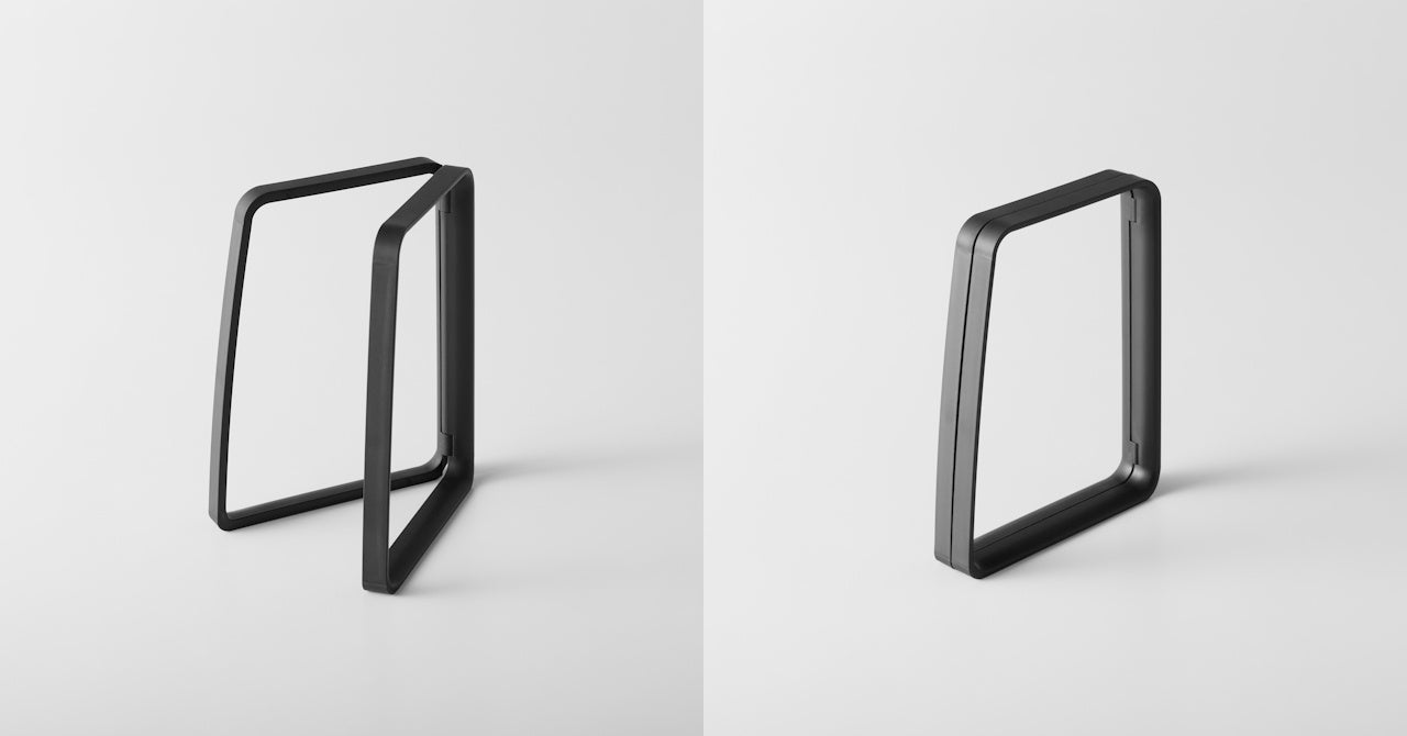 フレームの上下には一体型の滑り止めを施しました。これにより、袋が滑り落ちず、本体そのものも安定します。さらに、凹凸を最小限に抑えたことで汚れが溜まりにくく、お手入れが簡単です。ゴミが少ない時にはフレームを閉じることで簡易的なフタとして機能します。フレームを閉じると約3cmの薄さに。コンパクトに片付けることができます。
