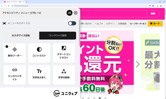 そしてエクスプライス株式会社は、企業理念に基づき、どなたでも快適にご利用いただけるECサイトを運営することによって「お客様に生活を豊かにする最高の満足と感動」をお届けする為、株式会社Kivaの提供するサービスである「ユニウェブ」を利用することで、ECサイト「XPRICE本店」においてウェブアクセシビリティ対応をスタートいたしました。