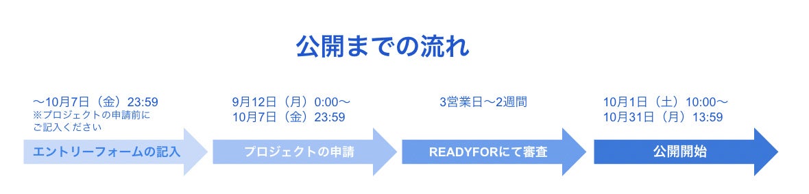 ※上記ページ内には審査に関して「申請から3営業日以内にREADYFOR継続寄付サポートチームが確認のうえ、連絡させていただきます。」と記載がありますが、キャンペーン期間中は通常よりも審査に時間を要することが予想されます。ご了承ください。