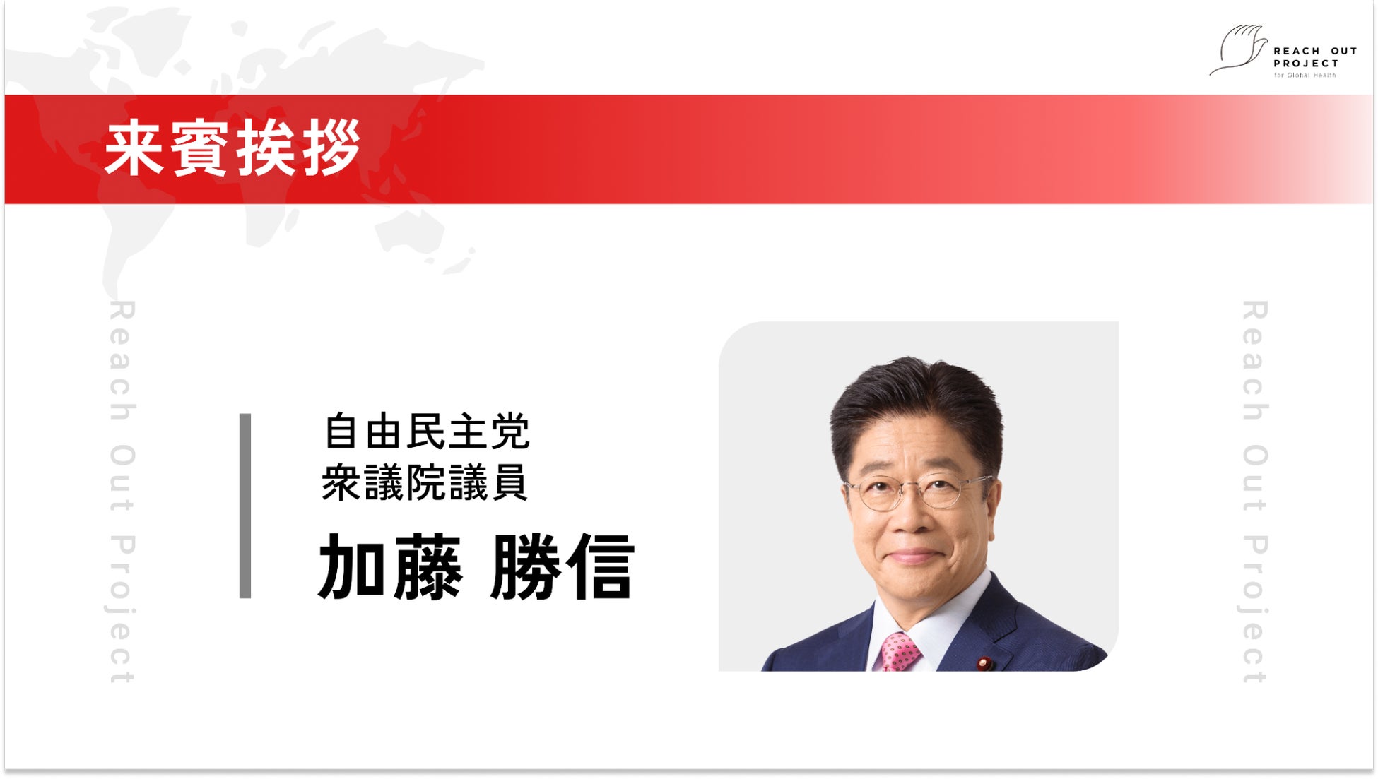 16:15 来賓挨拶①:加藤勝信(自由民主党 衆議院議員)