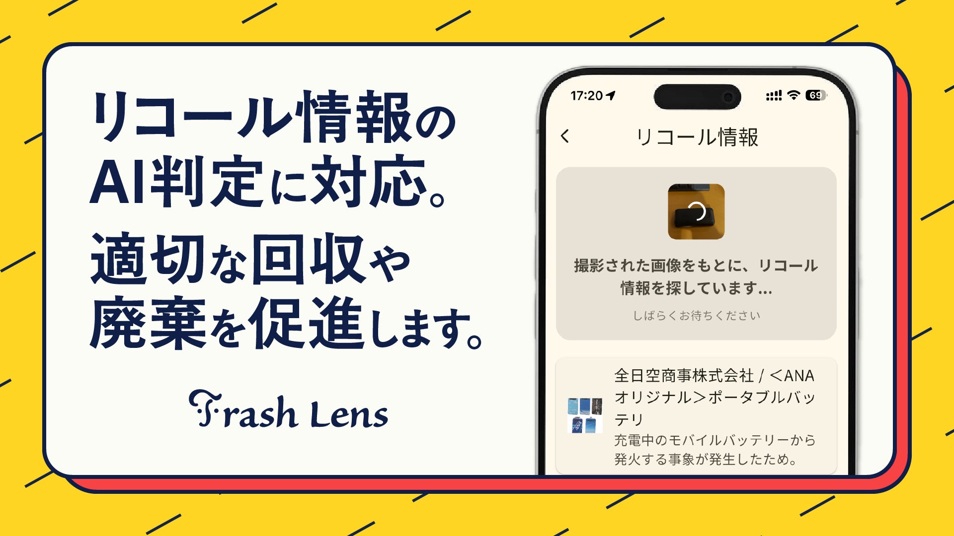 この度「Trash Lens」に追加されたリコール情報確認機能では、モバイルバッテリーをスマートフォンで撮影するだけで、AIが画像から型番やメーカー情報を読み込み、関連するリコール情報の有無を即座に表示します。