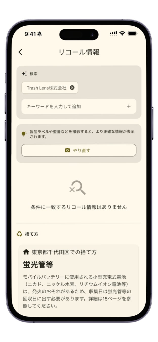 「Trash Lens」は、「これってどうやって捨てるの?」という利用者の疑問に5秒で答えることをコンセプトに開発されました。今回のリコール情報確認機能の追加により、ユーザーは「捨てたい」と思った瞬間に、安全性の確認から適切な廃棄方法の案内まで、一連の情報をワンストップで取得できるようになります。