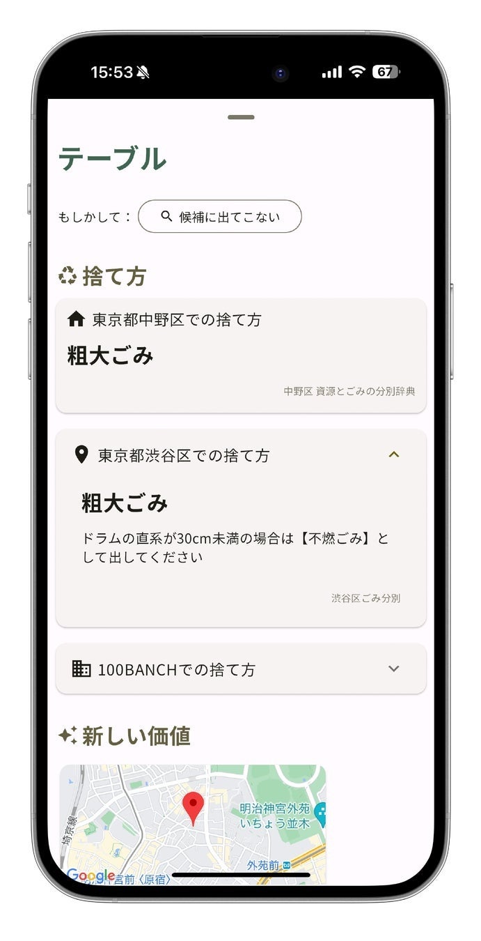 リコール対象製品であった場合は、メーカーの回収窓口やリコール詳細ページへのリンクを提示し、ユーザーが速やかに対処できるようサポートします。また、リコール情報が見つからなかった場合でも、お住まいの自治体での分別情報や、適切な廃棄方法を確認することが可能です。