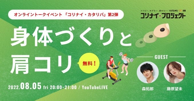 また、ゲストに人気婚活サバイバル番組への出演から一躍話題になった美容鍼灸師の藤原望未さんをお招きし、一緒にコリについて考え、ストレッチを実践します!画面の前の皆さんに「コリナイ・プロジェクト」特設サイトから視聴登録いただくと、Googleカレンダーよりリマインド設定が可能ですので、是非ご利用ください。また、見逃してしまった方向けに9月6日までアーカイブ配信も行います。