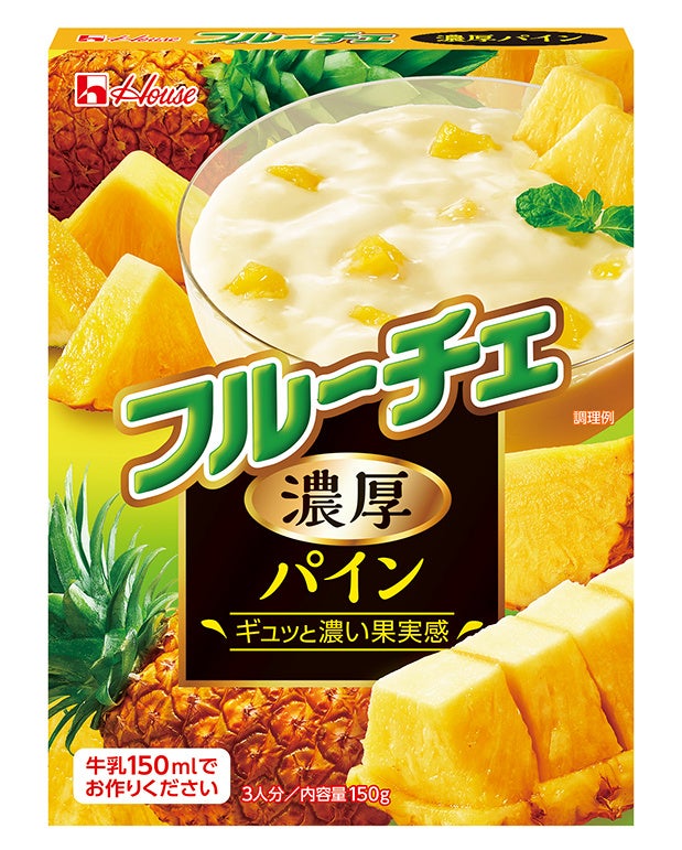 ハウス食品は、「フルーチェ」<濃厚パイン>を、1月24日からスーパーなどで発売します。パインの果肉と果汁入りで、パインのおいしさがギュッとつまった濃厚な風味をお楽しみいただけます。内容量は150g、税別希望小売価格194円。