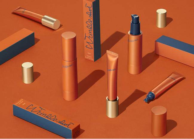 日本初のシワを改善する※薬用化粧品であることから、「前人未到の星を発見する旅」をイメージしました。宇宙服のチャレンジングオレンジ、宇宙のスペースブルー、星のゴールドの3色で統一し、ブランド思想の伝播を図りました。