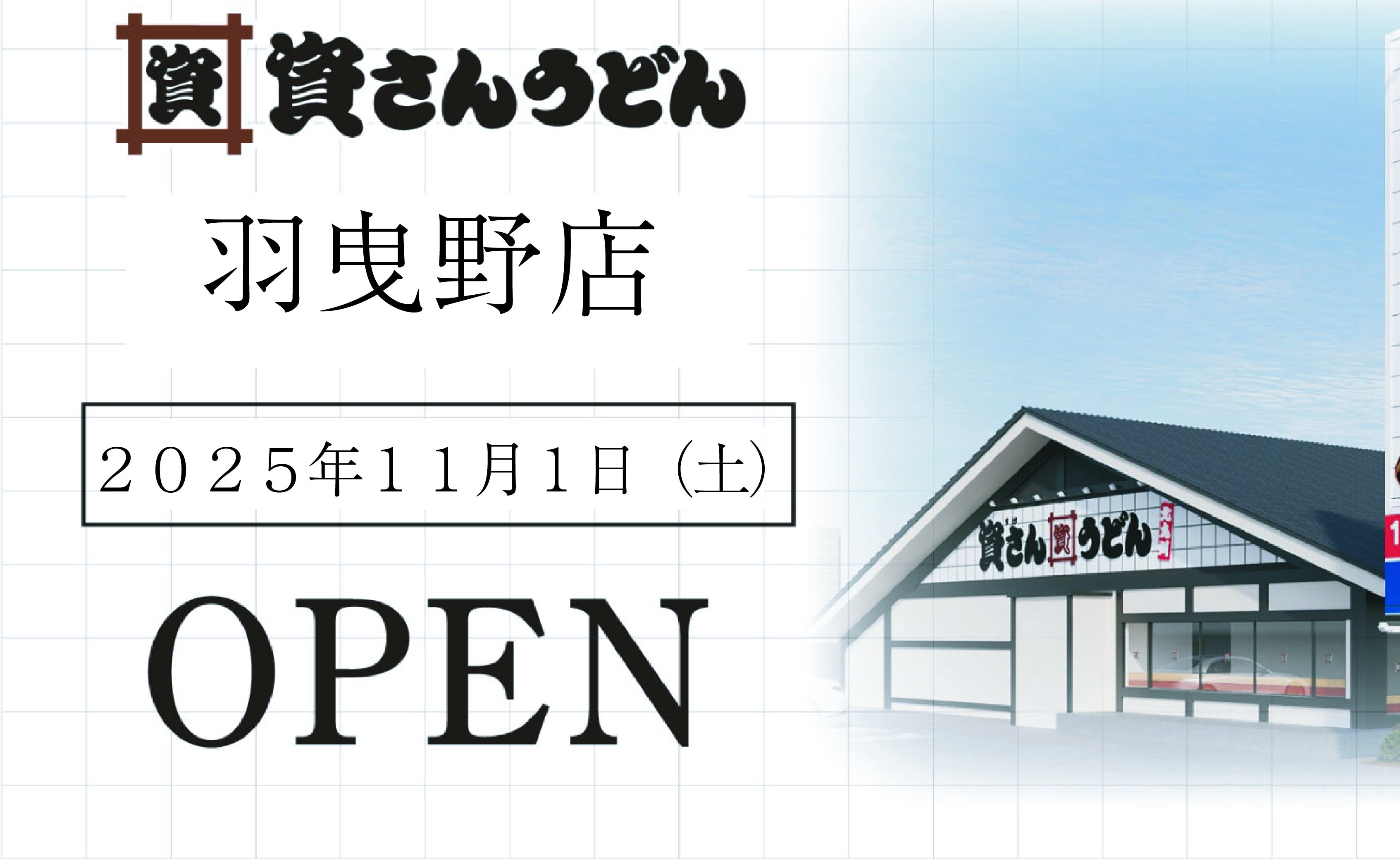 この度、大阪府内4店舗目、羽曳野市内初出店!「資さんうどん」90店舗目となる「資さんうどん羽曳野店」が、11月1日(土)午前10時にグランドオープンすることが決定いたしました。