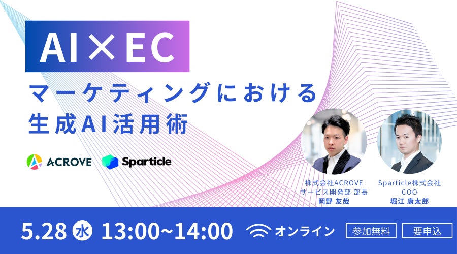 マーケティング領域における生成AIの活用事例をご紹介するウェビナーを5月28日(水)にSparticleと共催いたします。