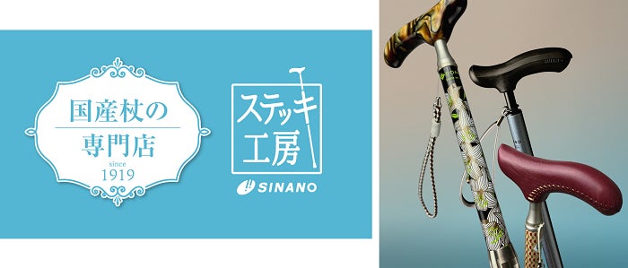 国産杖の専門店。創業1919年、スキーストックの生産で創業し、100年に渡り作り続けるシナノ。直営店となる当店では、約150種類の豊富なラインナップから、お一人おひとりに最適なステッキ探しのお手伝いをさせていただきます。