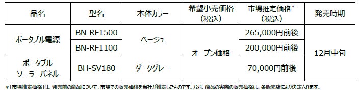 ポータブル電源「BN-RF1500」「BN-RF1100」と、ポータブルソーラーパネル「BH-SV180」を発売