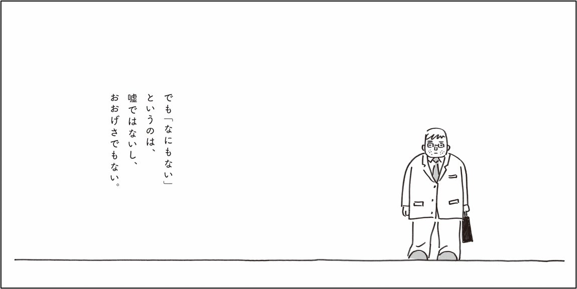 多くの人がさまざまなストレスを抱える現代。つい、誰かと比べて一喜一憂したり、幸せの基準を他人軸で考えてしまったりしてはいないでしょうか。「自分は何も持っていない」「いつも他人を妬んでしまう」「毎日がつまらない」――誰しも一度は感じたことのある、やり場のない鬱屈した思い。本書は、そんな私たちの感情にやさしく寄り添い、男性の独白を通じて、なにもないからこそ見えてくるもの、感じられるものの価値を私たちに教えてくれます。