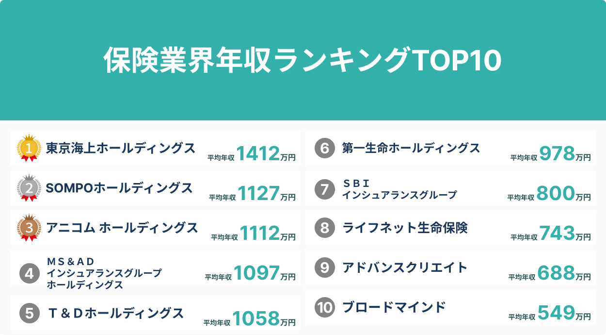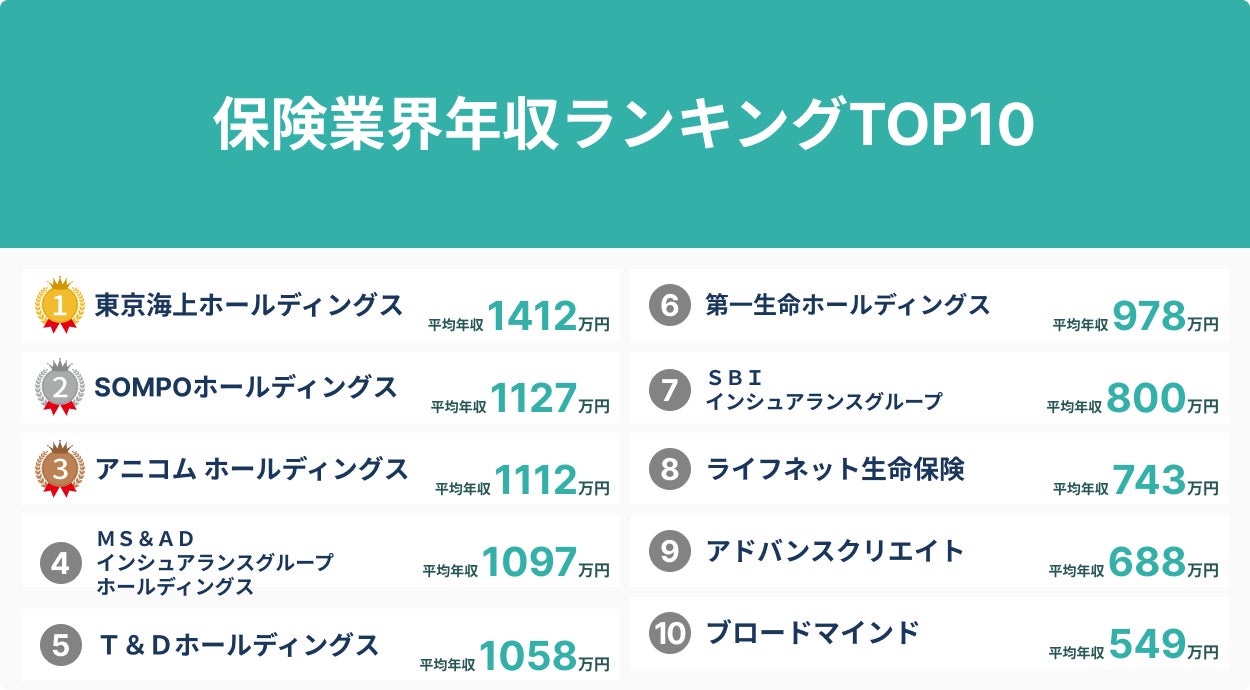 三位はアニコムホールディングス、二位はSOMPOホールディングス、そして一位はCMでお馴染みのあの企業!保険業界年収ランキングTOP10/SalesNow DBレポート