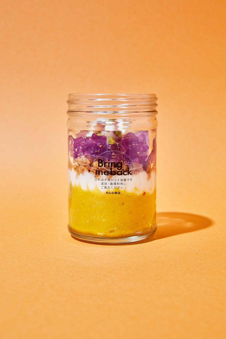 パフェ容器は回収・再利用可能なリターナブル瓶を採用し、デポジット制で循環利用を推進。