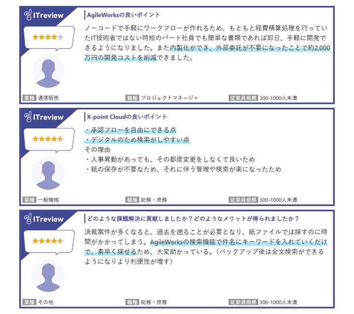 「ITreview」に寄せられたユーザーからのレビュー