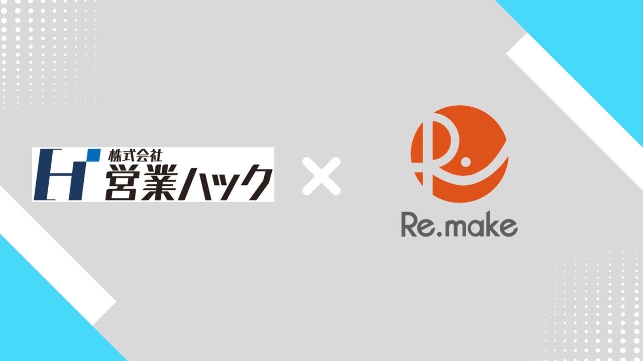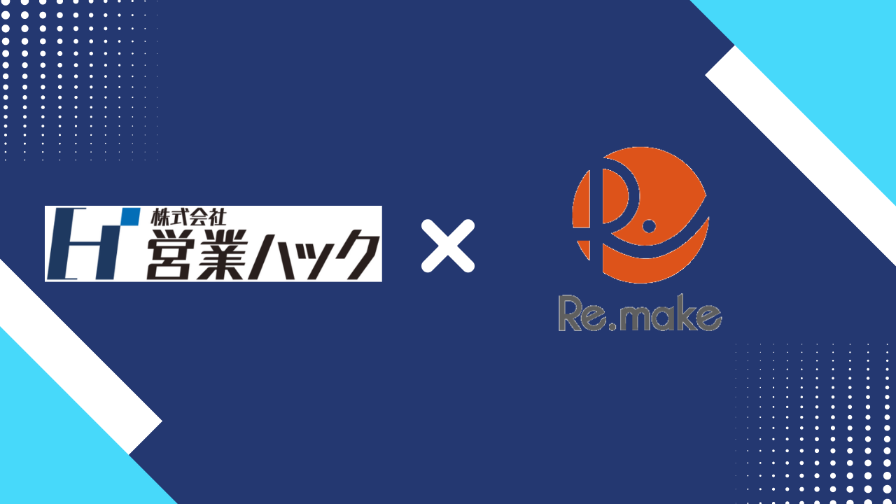 売れる営業組織への変革を実現する営業ハックは、今までにない常識を作り上げワクワクする未来を採用支援を通して作り上げる株式会社Re.makeと業務提携をしています