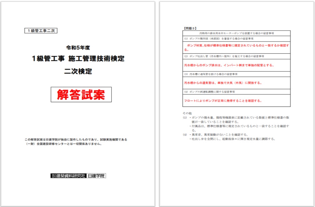 【2024年度1級管工事施工管理技士 二次検定】ご希望の方全員に「日建学院オリジナル解答試案」プレゼント!