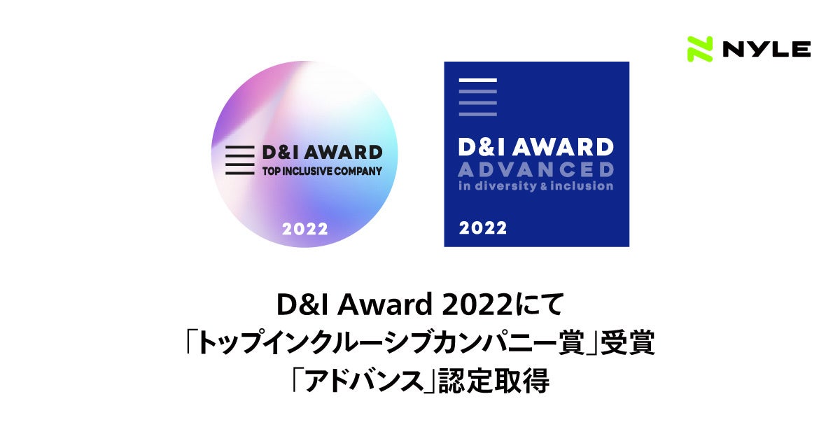 ナイル株式会社(本社:東京都品川区、代表取締役社長:高橋 飛翔、以下「ナイル」)は、D&I(ダイバーシティ&インクルージョン)に取り組む企業を認定・表彰する「D&Iアワード 2022」において、自分らしくいられると感じている社員が多い企業に授与される「トップインクルーシブカンパニー賞」を受賞しました。また同アワードで、日本国内企業の中でもD&Iを先進的に進める企業として「アドバンス」の認定も受けました。
