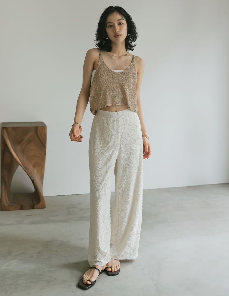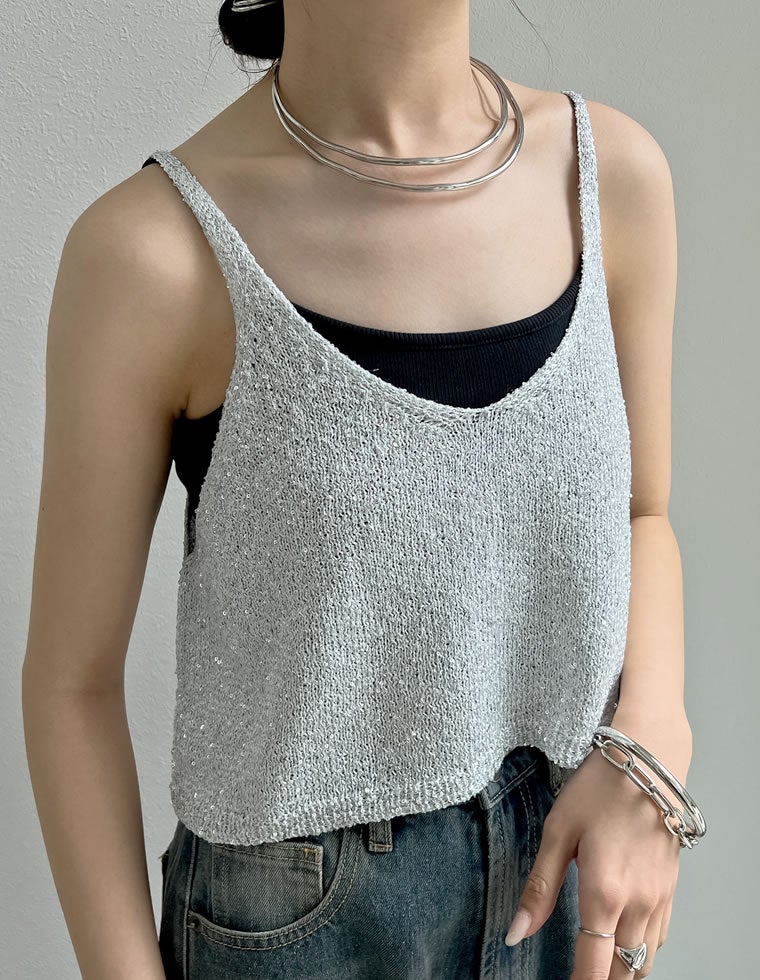 きらびやかなスパンコールがたっぷりと施されたニットビスチェ。