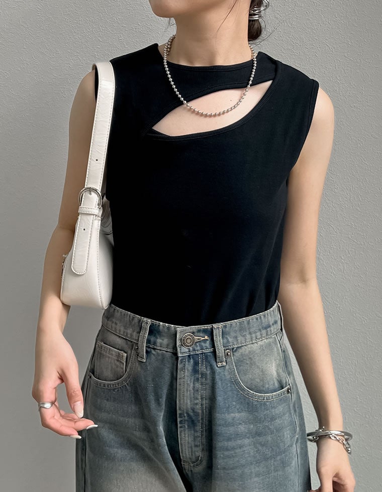 商品名:ストレッチリブカットソーカットアウトタンクトップ