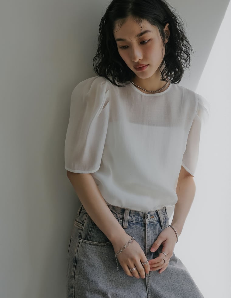肩回りに絶妙なタックが入ることで、レディーな要素もプラス。