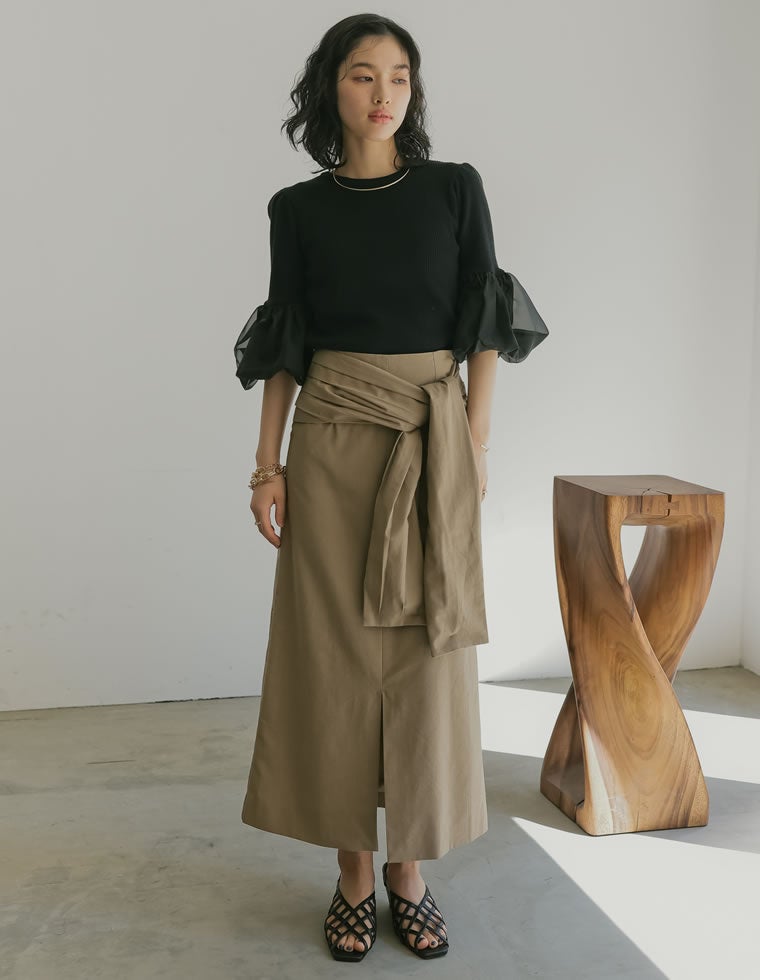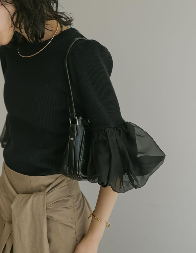 商品名:異素材切り替えバルーンスリーブ七分袖リブニットトップス