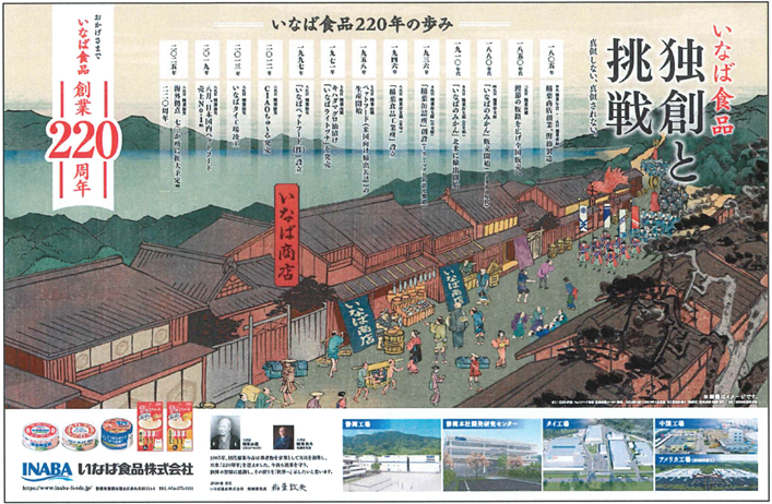 いなば食品 東海から世界へ。「独創と挑戦」の220年を描く全30段(見開き)広告を、中日新聞に掲載