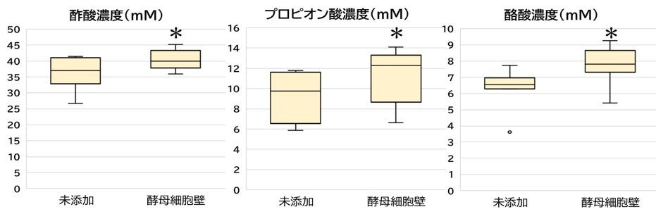 図3. パン酵母由来の酵母細胞壁添加後の培養液中の短鎖脂肪酸濃度