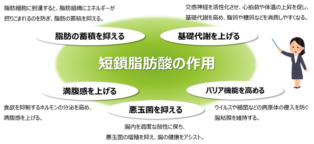 以上の結果より、乾燥ビール酵母は、腸内環境改善に寄与できるプレバイオティクス※5効果を有することが示唆されました。また、プロバイオティクス素材と組み合わせることで、プロピオン酸の産生がより増強されたことから、乾燥ビール酵母とプロバイオティクス素材(アシドフィルス菌・フェカリス菌・ビフィズス菌)の組み合わせはシンバイオティクス※6効果を有する可能性が考えられます。