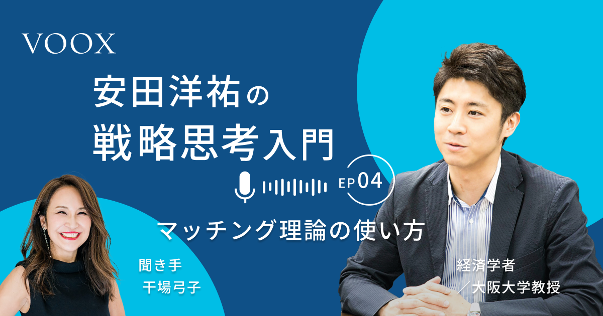 ノーベル経済学賞!経済学者・安田洋祐さん『安田洋祐の戦略思考入門|第4話. マッチング理論の使い方』音声教養メディアVOOXにて、配信開始!