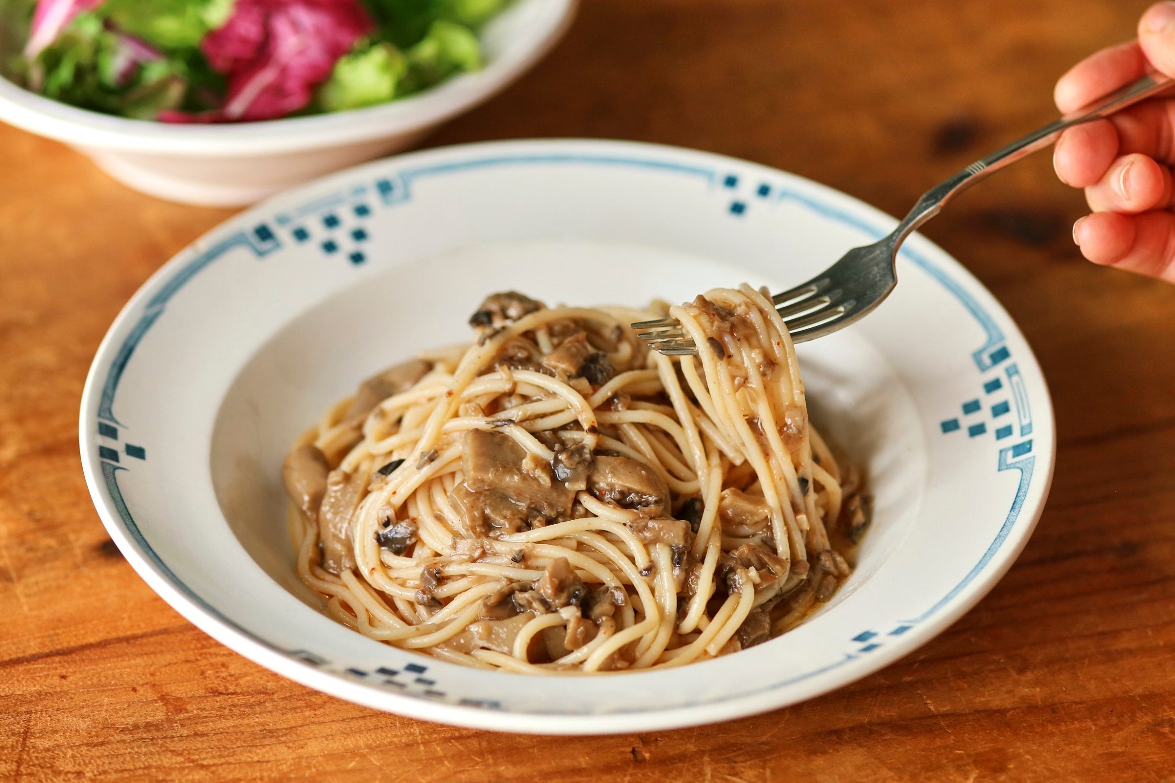 ●きのこ味わうペペロンチーノ