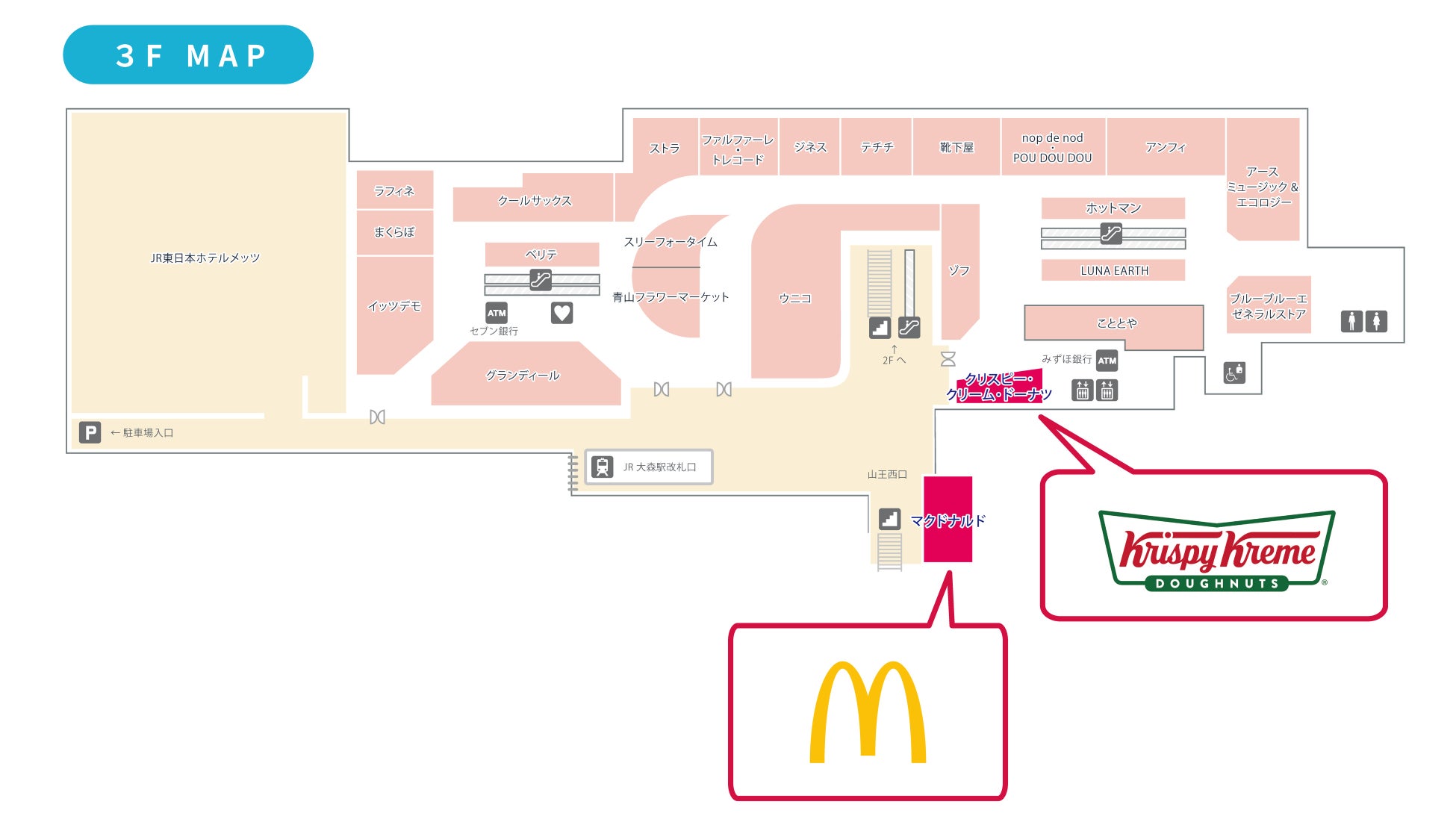 【アトレ大森】JR大森駅直結のアトレ大森3Fに「マクドナルド」と「クリスピー・クリーム・ドーナツ」の2ショップが8月にNEW OPEN!