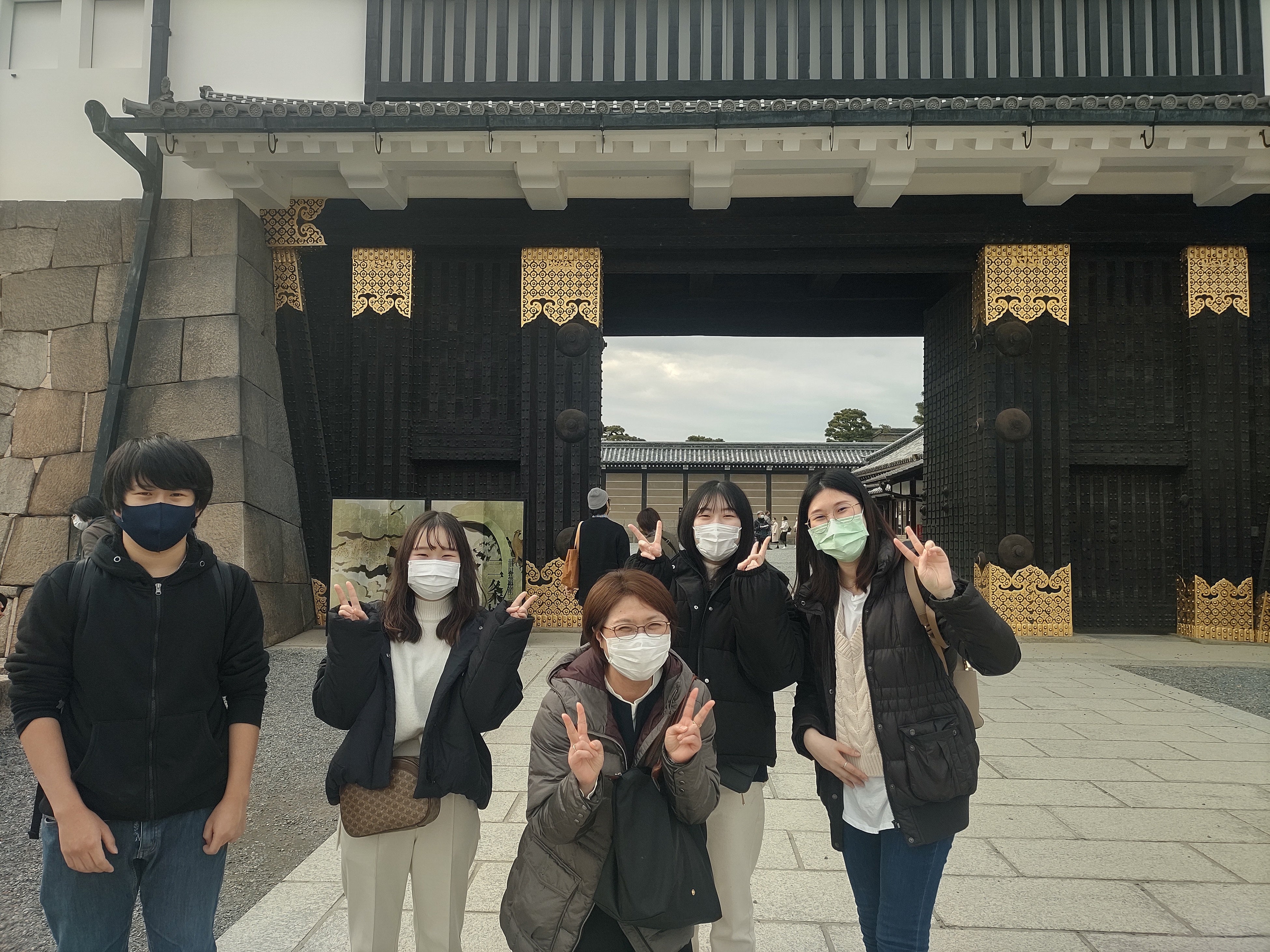2021年12月11日(土)、京都ホテル観光ブライダル専門学校の旅行学科2年生が外国人向けにインバウンドツアーを行いました。旅行学科の学生が本校のホスピタリティビジネス学科(留学生限定学科)の留学生をお客さん役とし、京都旅行を企画。旅行の手配はもちろん、英語での観光地案内や留学生の母国語での挨拶ができるように練習を積み、当日のガイドを務めました。