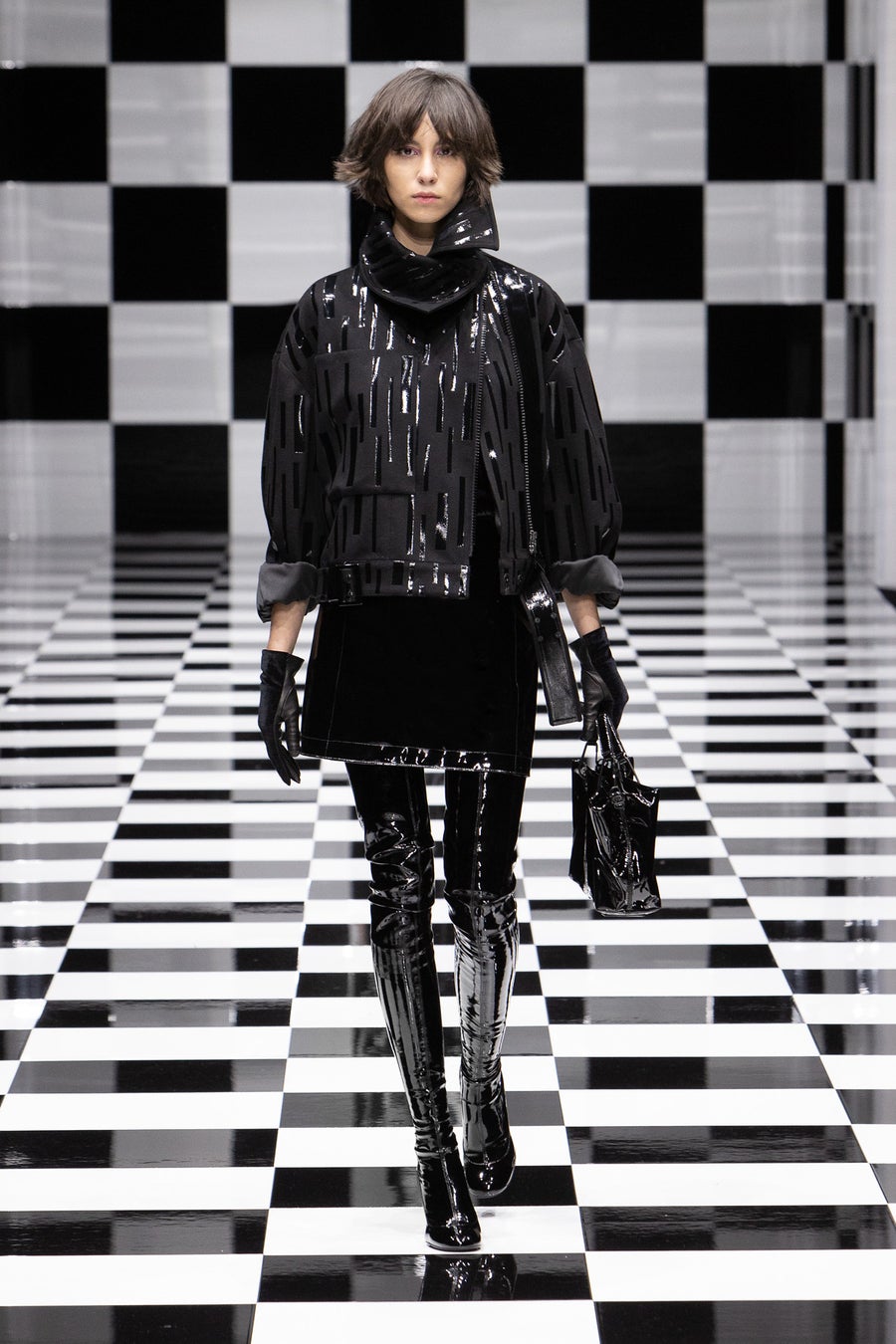 また、ショーの後半に登場したオールブラックのルックも要チェック。ブラックカラー1色で作りあげながらも、異素材を組み合わせることにより様々な種類の輝きをミックスさせ「グラマー」をアルマーニ流に表現しました。ランウェイルックのようなモードなコーディネートはもちろん、それぞれのアイテムは単品使いとしてデイリーコーディネートでも活躍が期待できます。