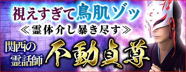 【霊力強すぎて大反響】怖いくらいに当たると噂が広がり鑑定依頼続出の『関西最強の霊話師 不動貞尊』の霊視鑑定が登場。あなたに訪れる現実や恋するあの人の心境、運命の日を“守護霊との霊対話”で本当の真実をお視せいたします。視える力が別格の鑑定をご体感ください。