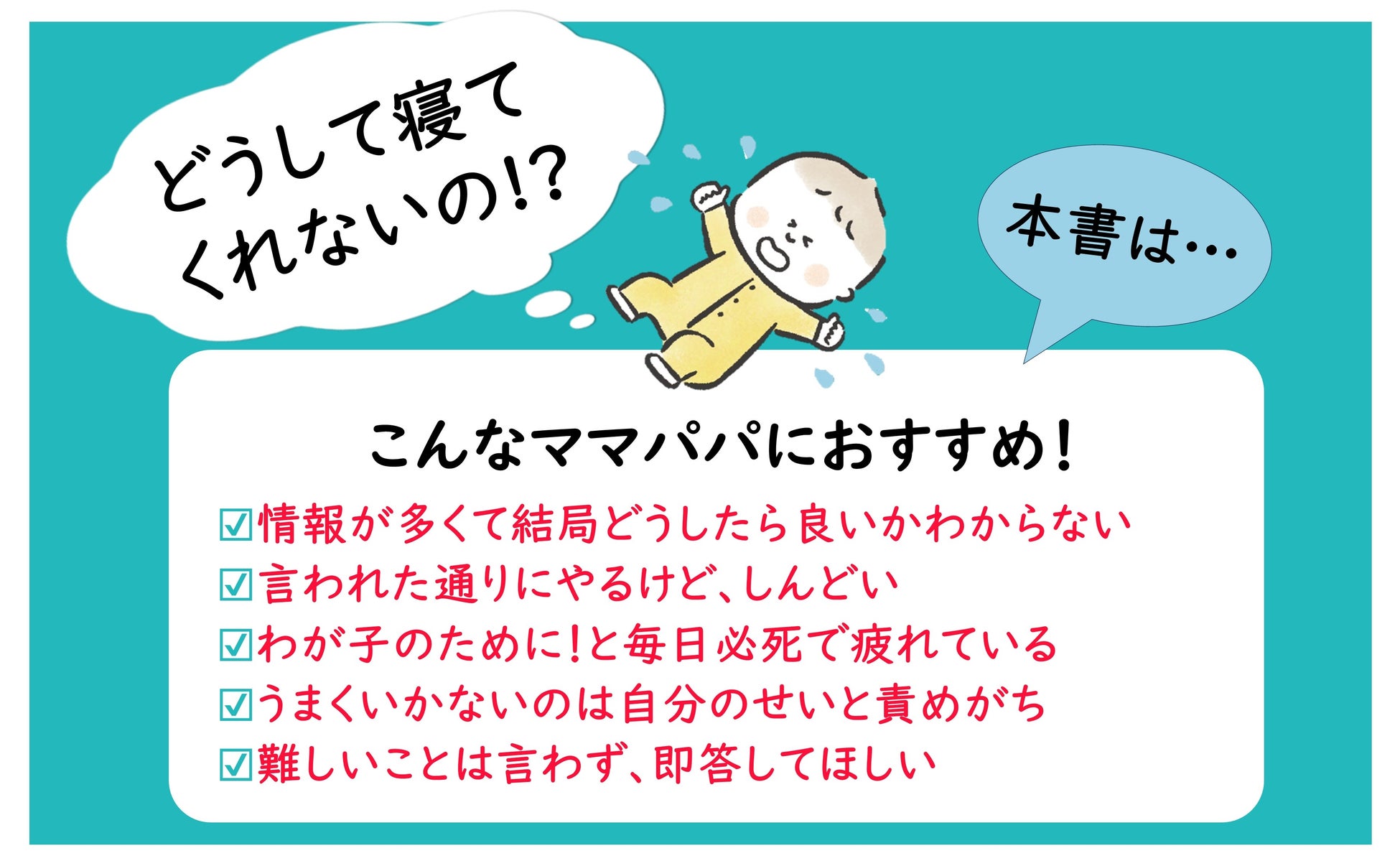 「どうしても寝てくれない!」「あれはダメ、これもダメ…。あれをやれ、これもやれ…。なにが正解かわからない!!」