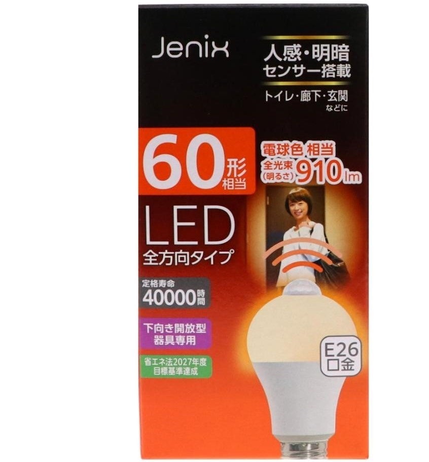 Jenix センサーLED電球 60形相当 E26 電球色