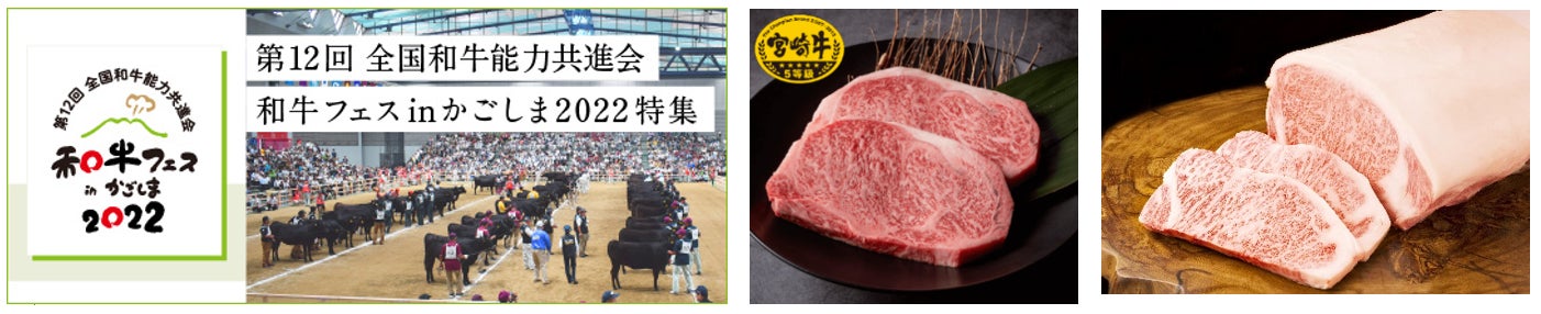 特設ページでは、「第12回全国和牛能力共進会鹿児島大会『肉牛の部』」において、内閣総理大臣賞(第7区 脂肪の質評価群 首席)を受賞した宮崎県の宮崎牛、第6区(総合評価群)と第8区(去勢肥育牛)首席の鹿児島県の鹿児島黒牛などの優秀な成績を収めた銘柄牛や、全国の和牛を特集し、販売します。