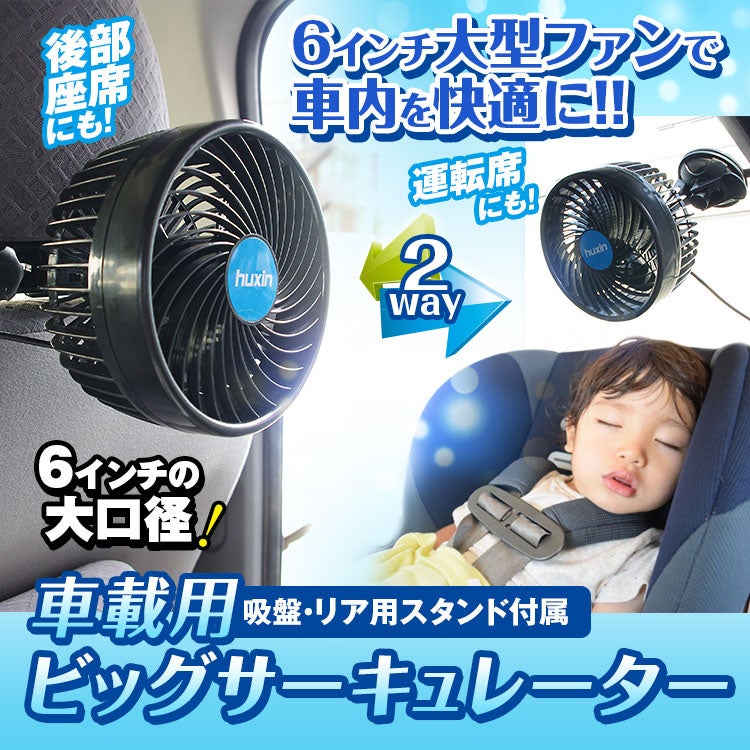 6インチ大型ファンでエアコンの風を循環させて車内を快適に