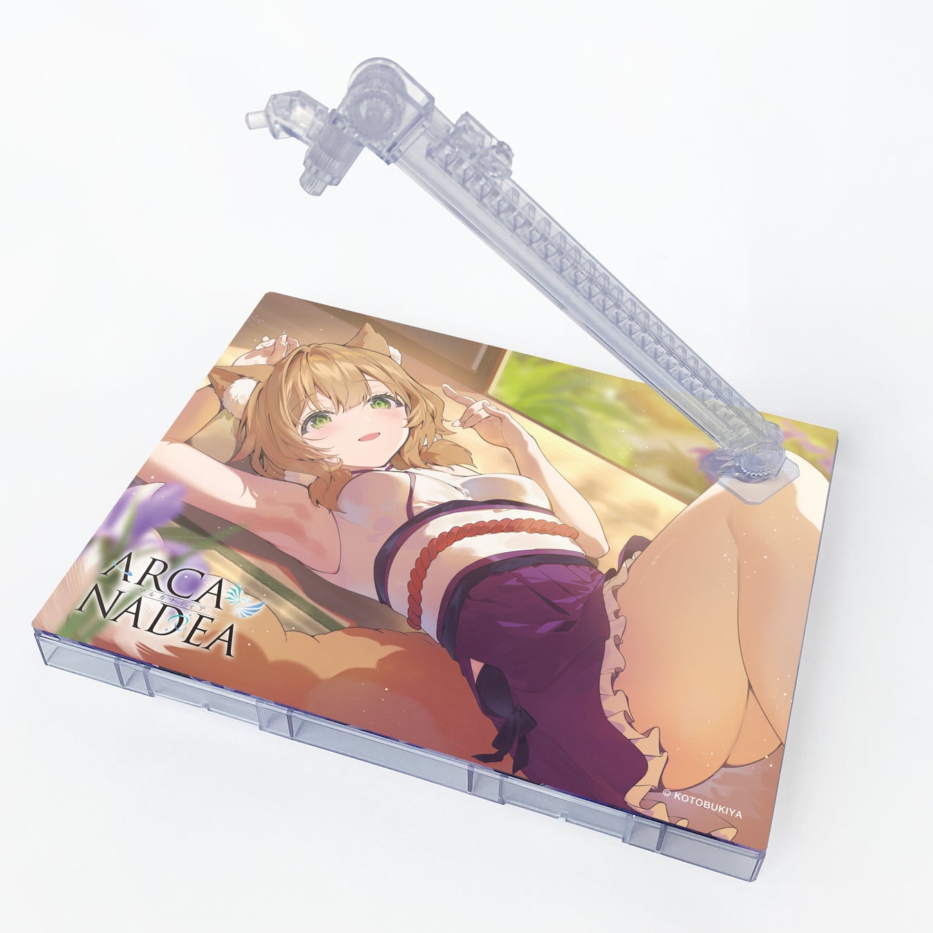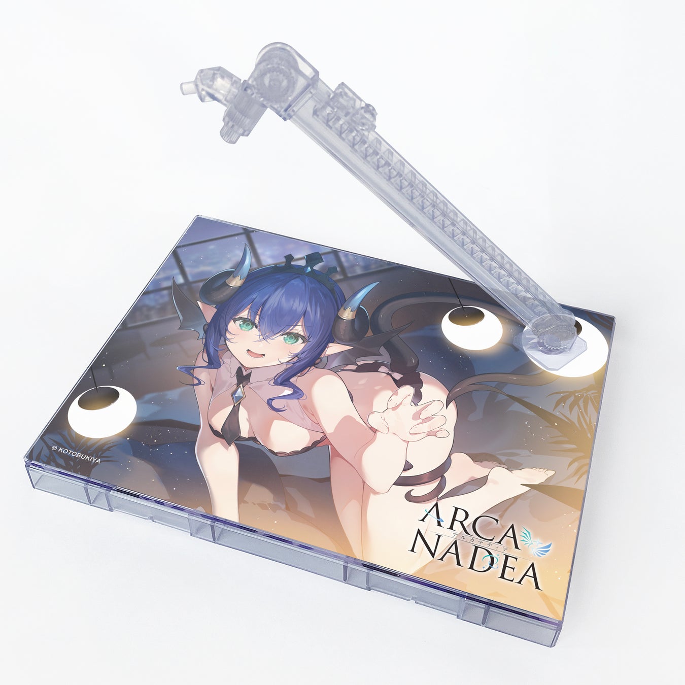 「アルカナディア アクリルベースプレート」は、『アルカナディア』のメインキャラクターデザイナー・necömi氏による描きおろしイラストを全面にあしらったアクリル製のアイテムです。