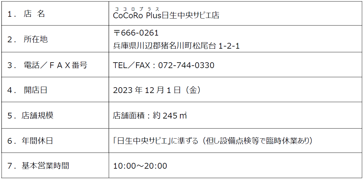 【「CoCoRo Plus 日生中央サピエ店」概要】