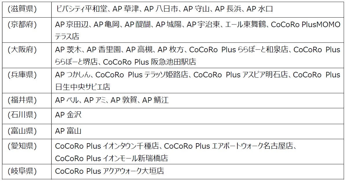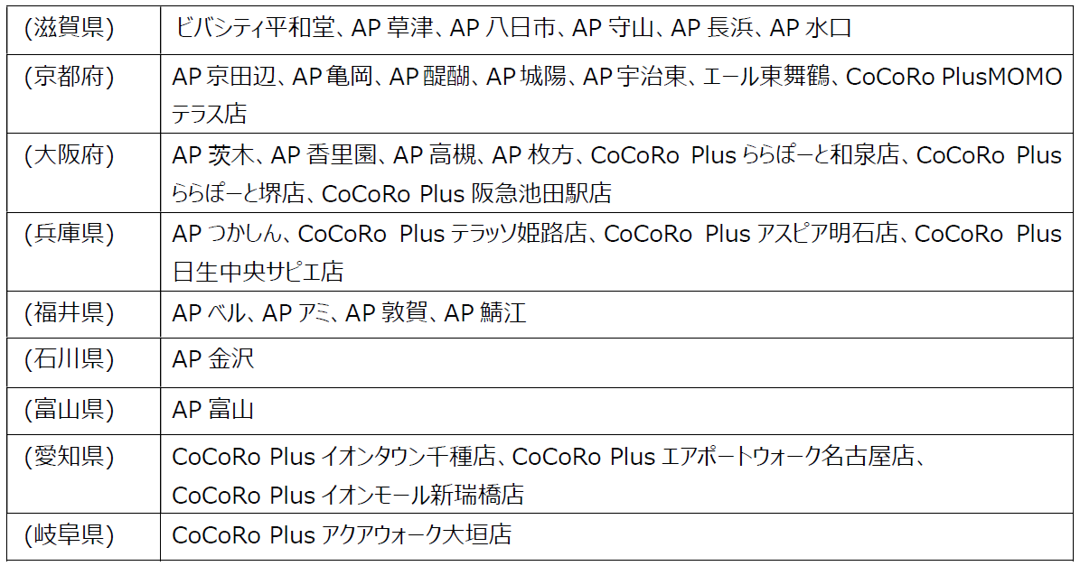 ※CoCoRo Plusの表記のない店舗は、平和堂グループが運営するSC内の店舗です